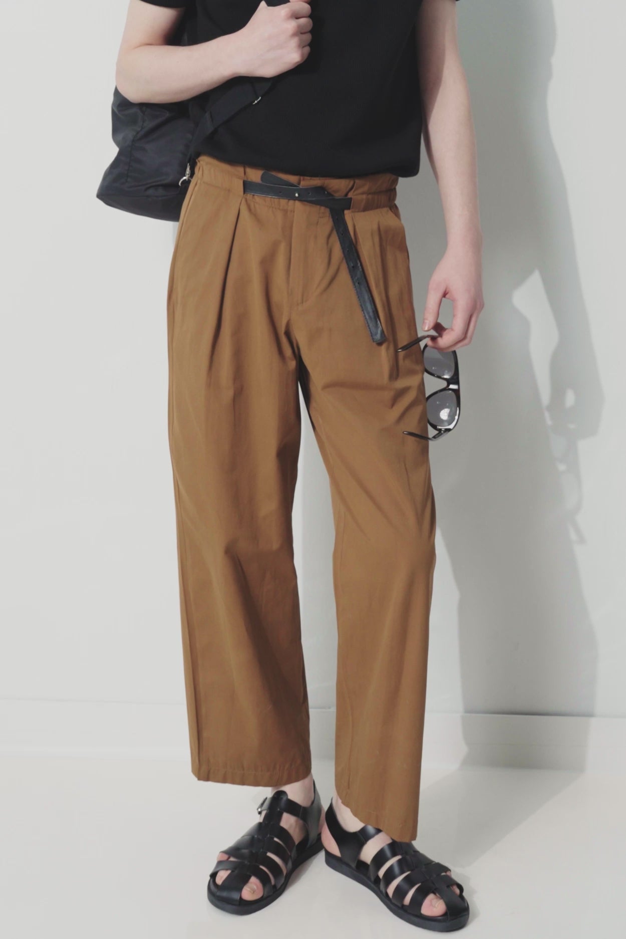 Deri kemerli, klasik kemerli pantolon.