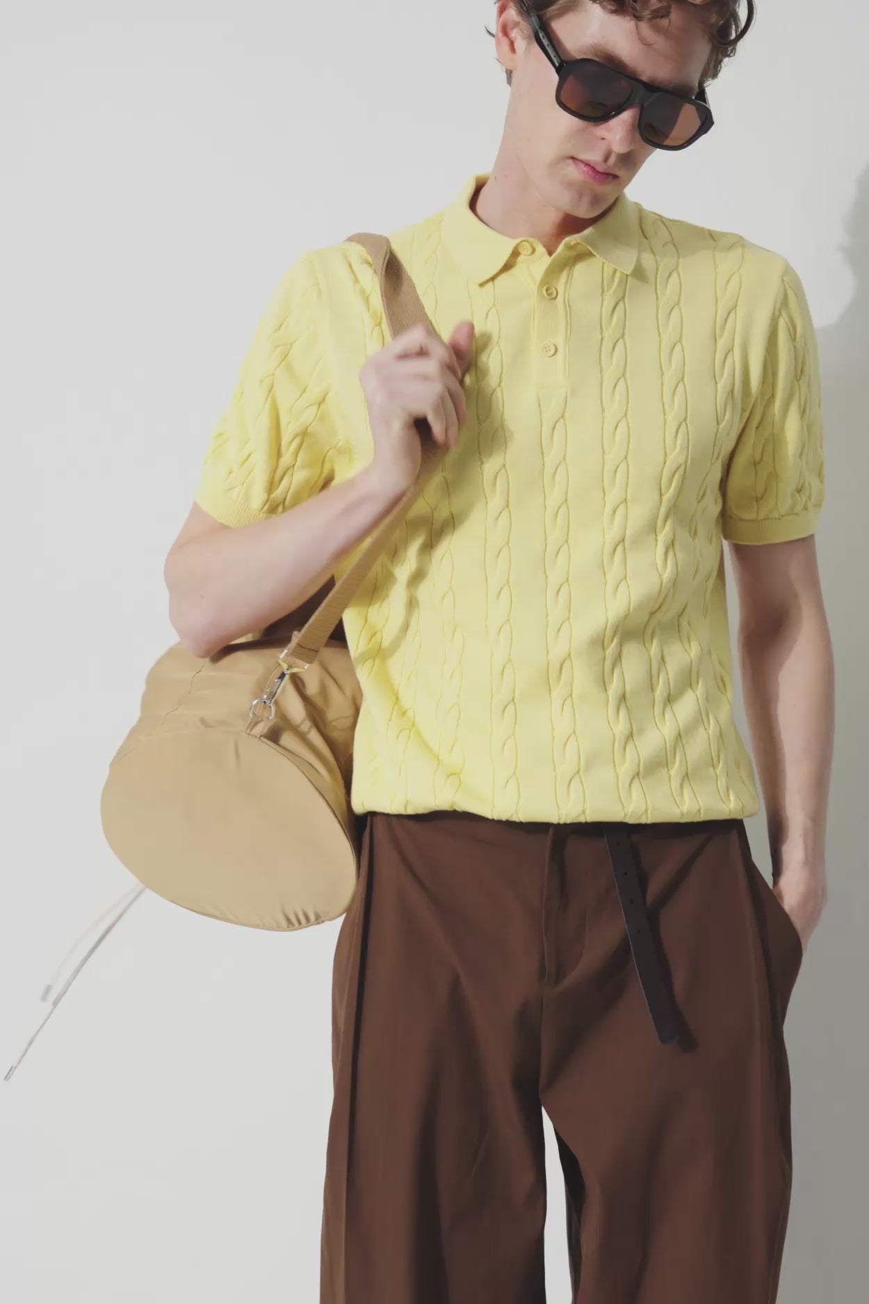 DOKULU ÖRGÜ DESENLİ SARI POLO YAKA TRİKO T-SHIRT